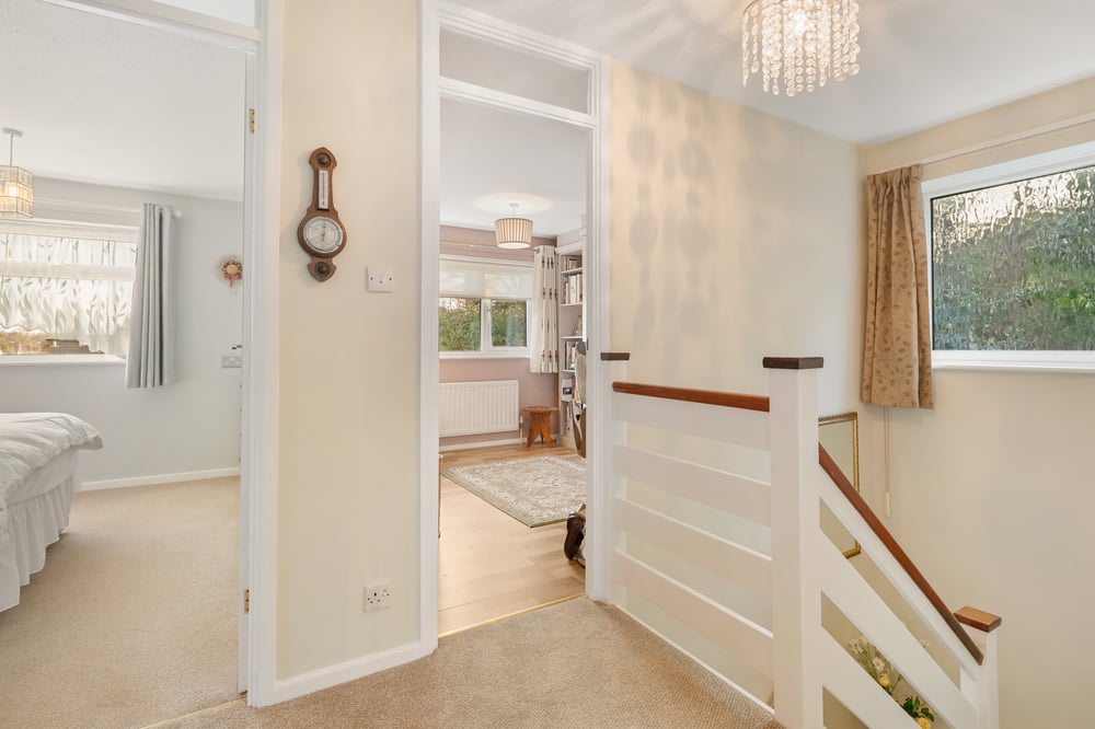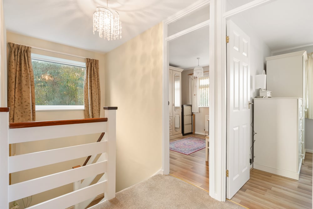 Loft access, airing cupboard and doors to.