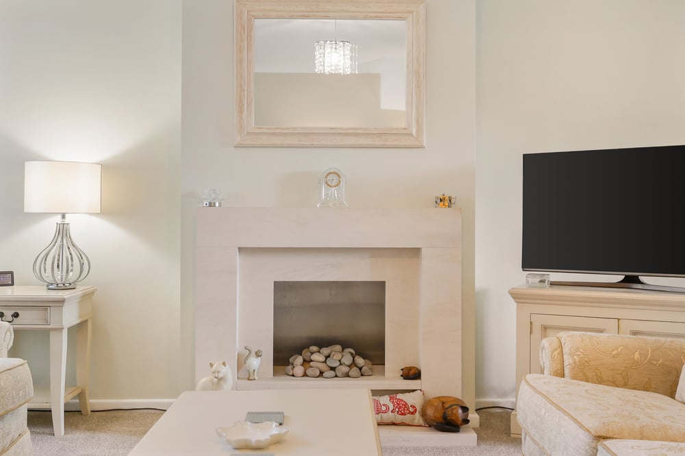 15' 5" x 15' 1" (4.70m x 4.60m) Window to front, open to dining room, feature fireplace, radiator, stairs to first floor.