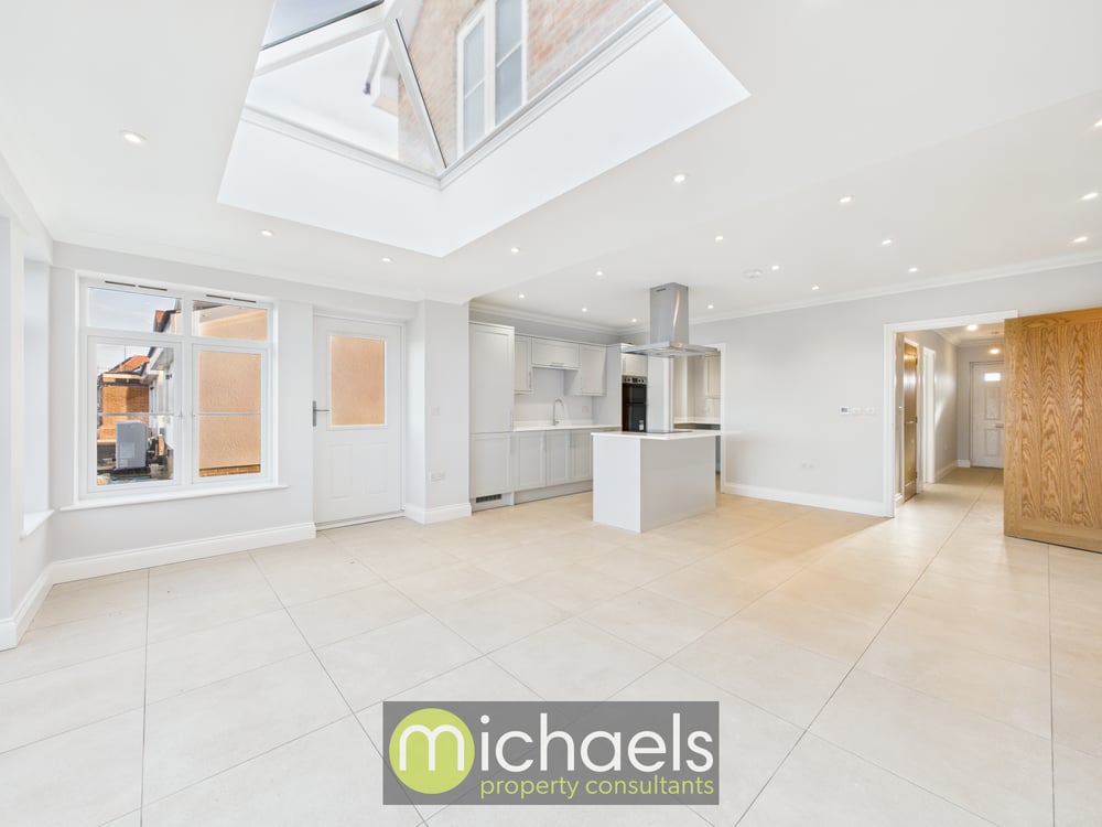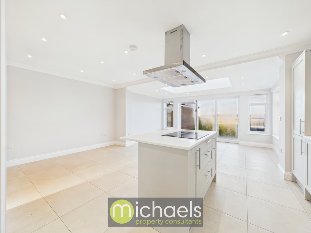 Inside, the light-filled entrance gives way to a generous sitting room and a striking open-plan kitchen/dining/family area — the heart of the home — complete with a contemporary breakfast island, glazed doors onto the garden and a dramatic roof lantern that floods the space with natural light. At approximately 6.43m × 5.86m (21'1" × 19'3"), the kitchen/diner provides an ideal space for family meals, entertaining or simply relaxing with a morning coffee. A convenient integral utility room and a downstairs cloakroom complete the ground floor, making everyday living both comfortable and practical.