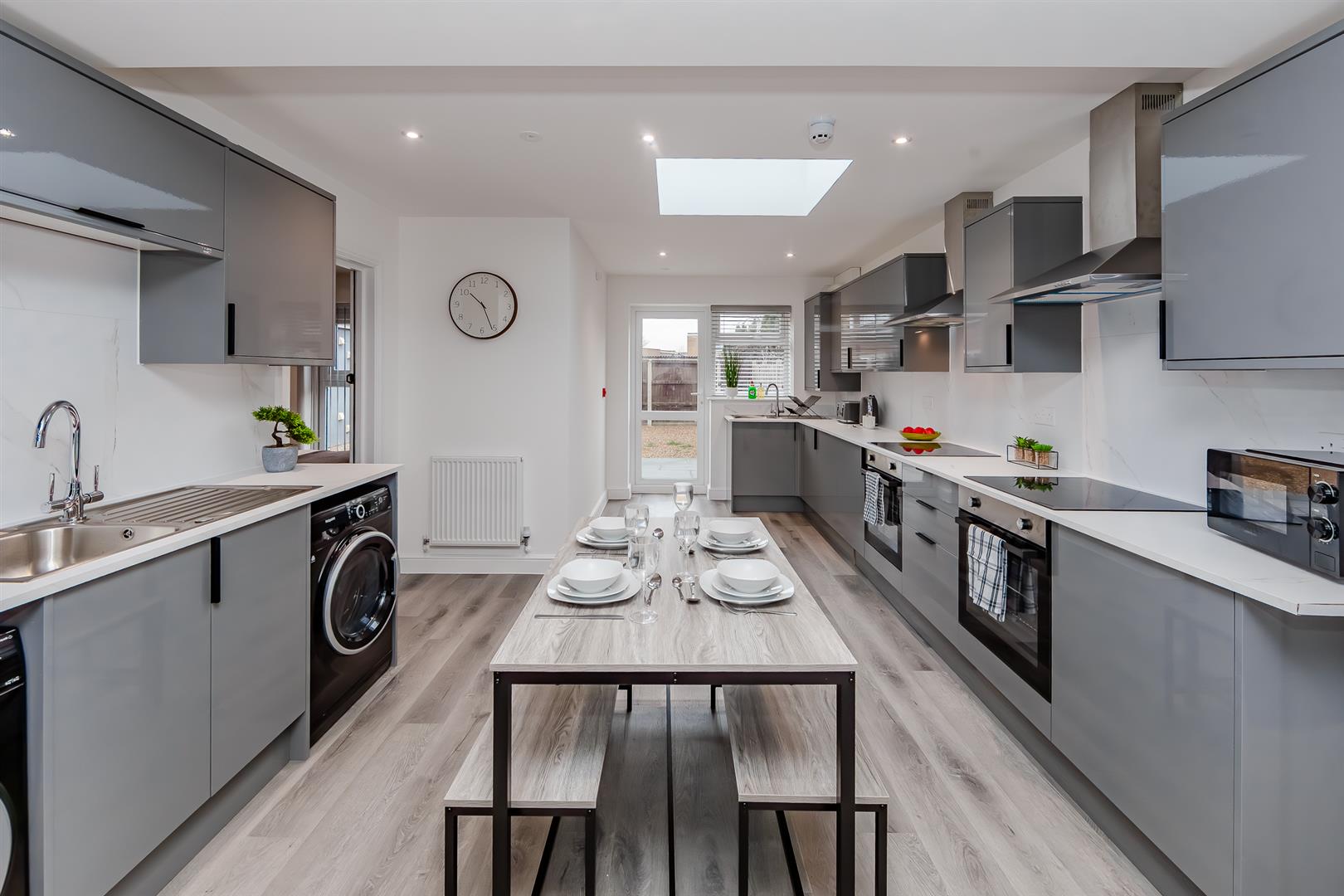 The shared kitchen has been fully equipped with two ovens, two washing machines and extra-large fridge/freezers, ensuring plenty of convenience for all occupants. The kitchen further benefits from a dining area, and a smart TV.